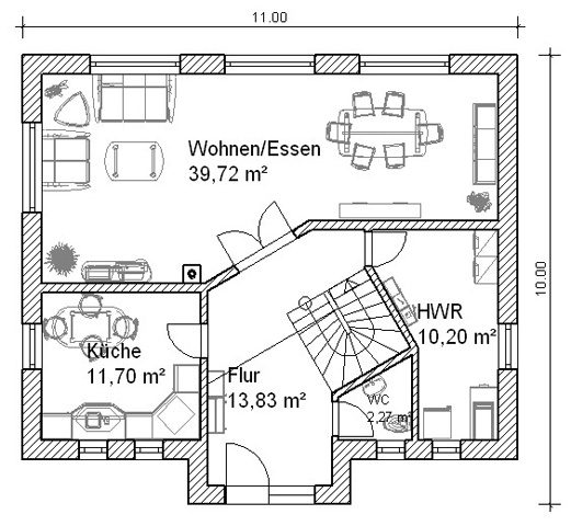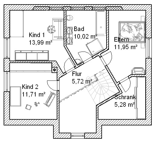 Mit unserer energiesparenden Gebäudehülle und innovativer Haus- technik sorgen wir dafür, daß Sie sich zuhause wohl fühlen und dabei monatlich Energiekosten sparen. | | | | Erdgeschoss | | | | Obergeschoss | | | | | | | Wohnen/Essen | | 39,72 m² | | | Eltern | | 11,95 m² | | | | | Küche | | 11,70 m² | | | Kind 1 | | 13,99 m² | | | | | WC | | 2,27 m² | | | Kind 2 | | 11,71 m² | | | | | HW-Raum | | 11,20 m² | | | Bad | | 10,02 m² | | | | | Flur | | 13,83 m² | | | Flur | | 5,72 m² | | | | | | | | | | Schrank | | 5,28 m² | | | | Gesamtnutzfläche 136,39 m² | | Erdgeschoss | Obergeschoss |