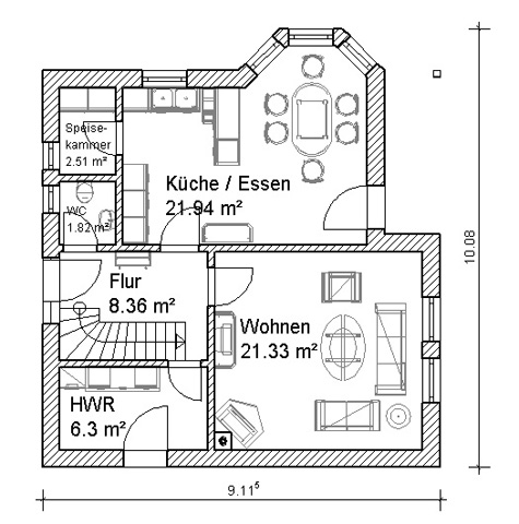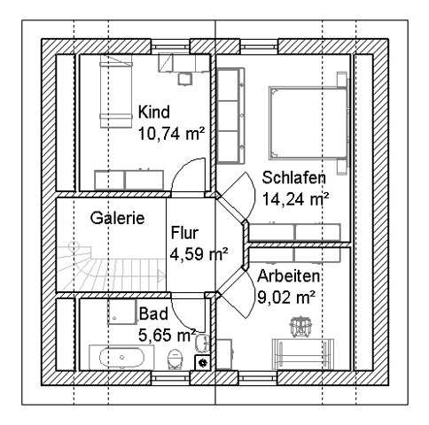 Mit 106 m² das derzeit kleinste Haus im Programm muß man hier auf nichts verzichten.