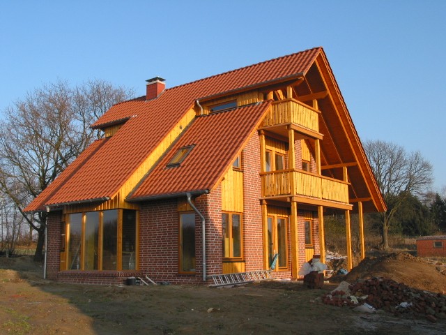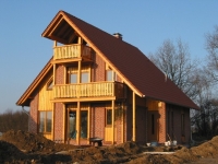 | Die außergewöhnliche Dachform dieses Hauses bringt mit den Holzelementen in der Fassade ein unverwechselbares Äußeres zustande und verwandelt den Spitzboden in einen hellen geräumigen Raum. Die zwei Balkone laden ein zum Relaxen und in die Ferne schauen.